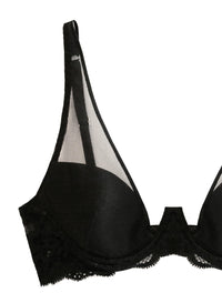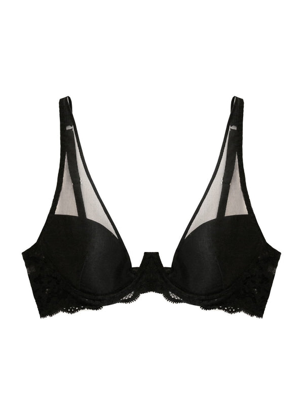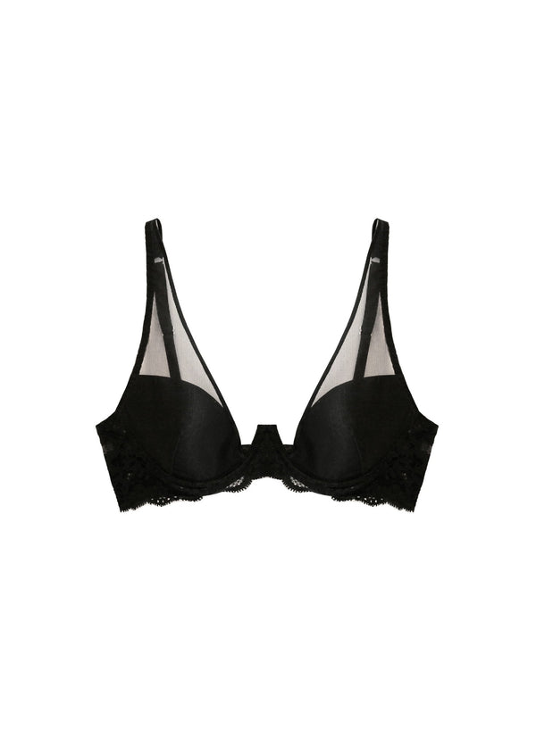 This lightweight plunge bra with sheer overlay provides subtle shaping and lift. The stretch tulle overlay creates a seamless look, perfect for wearing under anything. Adjustable straps with hook & eye back closure. Complete the look with the Charlotte Lace Seamless Thong or the High Waist Bottom.