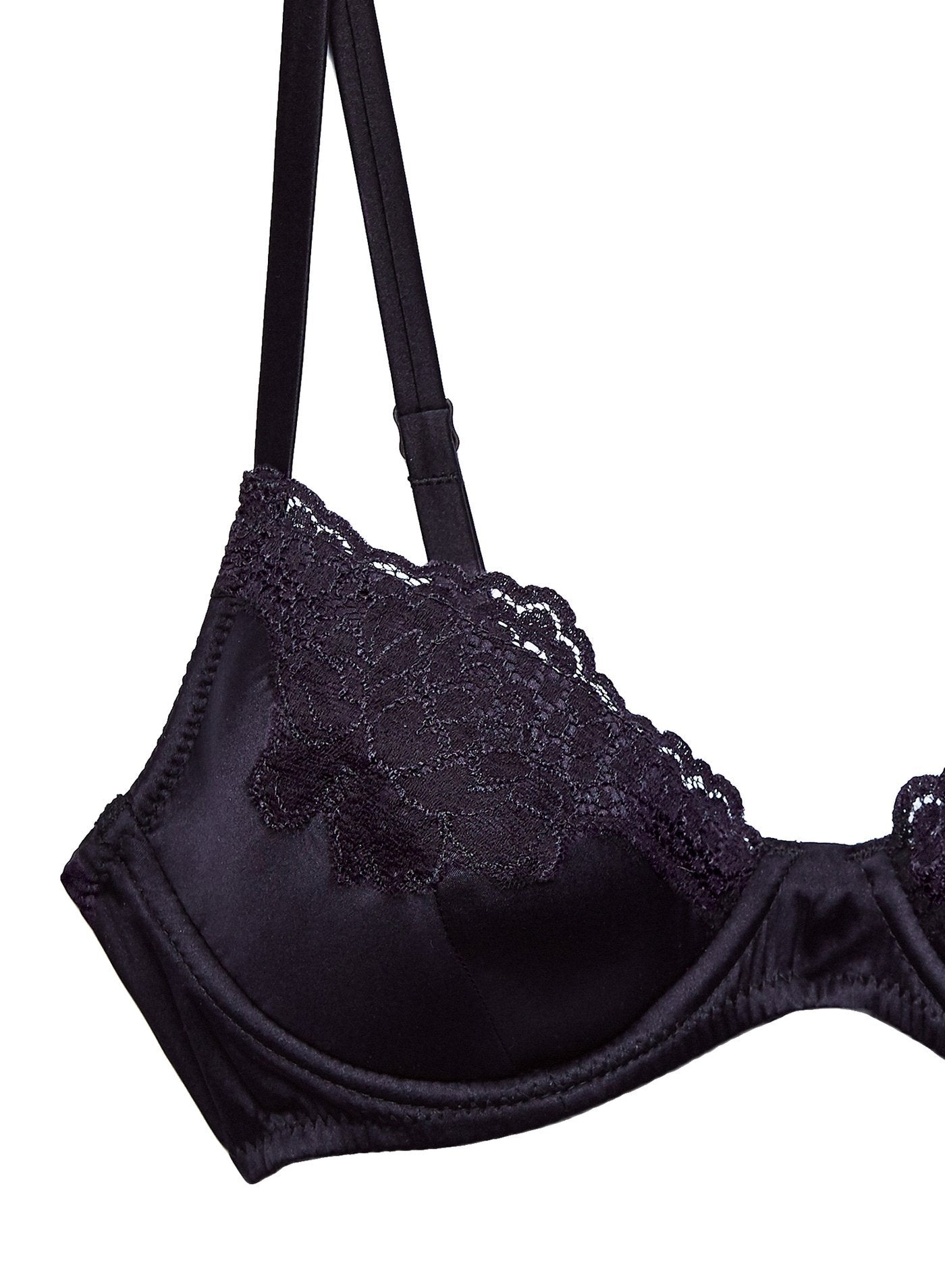 Our quintessential lace bra in black offers everyday support and structure with underwire cups, adjustable straps, and lace trim. Built-in padding provides subtle shape and lift. Finished in scalloped lace that gently hugs your bust. Pair with the matching James Lace Cheeky.