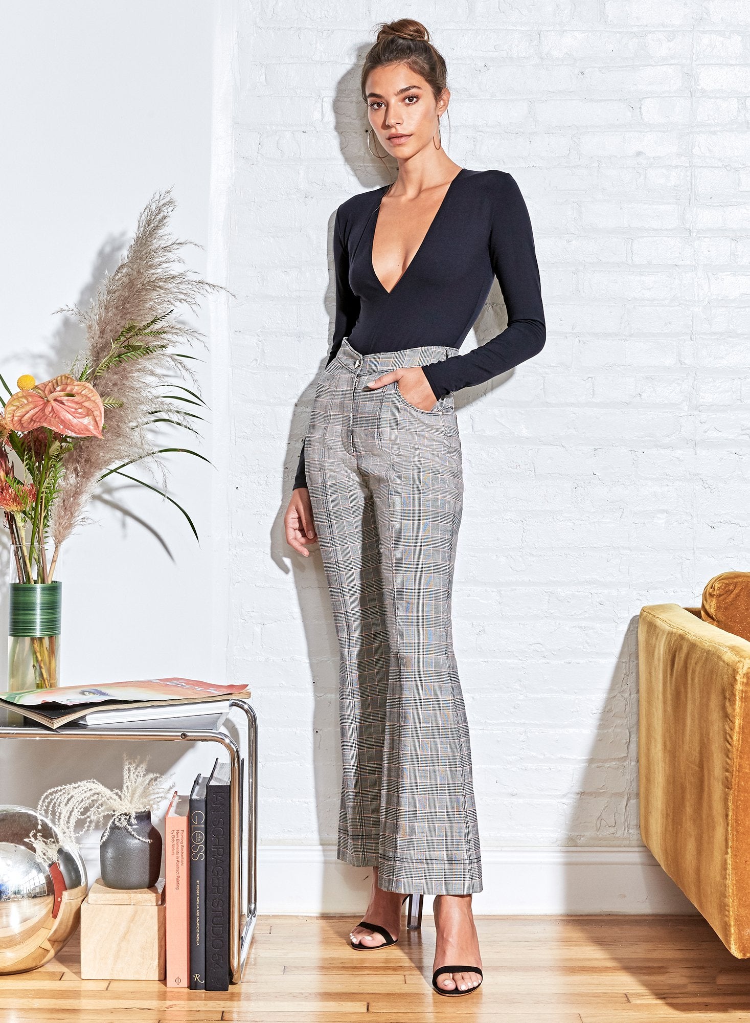 Take the plunge. Our Long Sleeve Deep-V Bodysuit features sexy deep v neckline with long sleeves. Soft stretch fabric hugs the body in all the right places. Thong cut. Looks chic with your favorite pair of boyfriend jeans, or dressed up with trousers.
