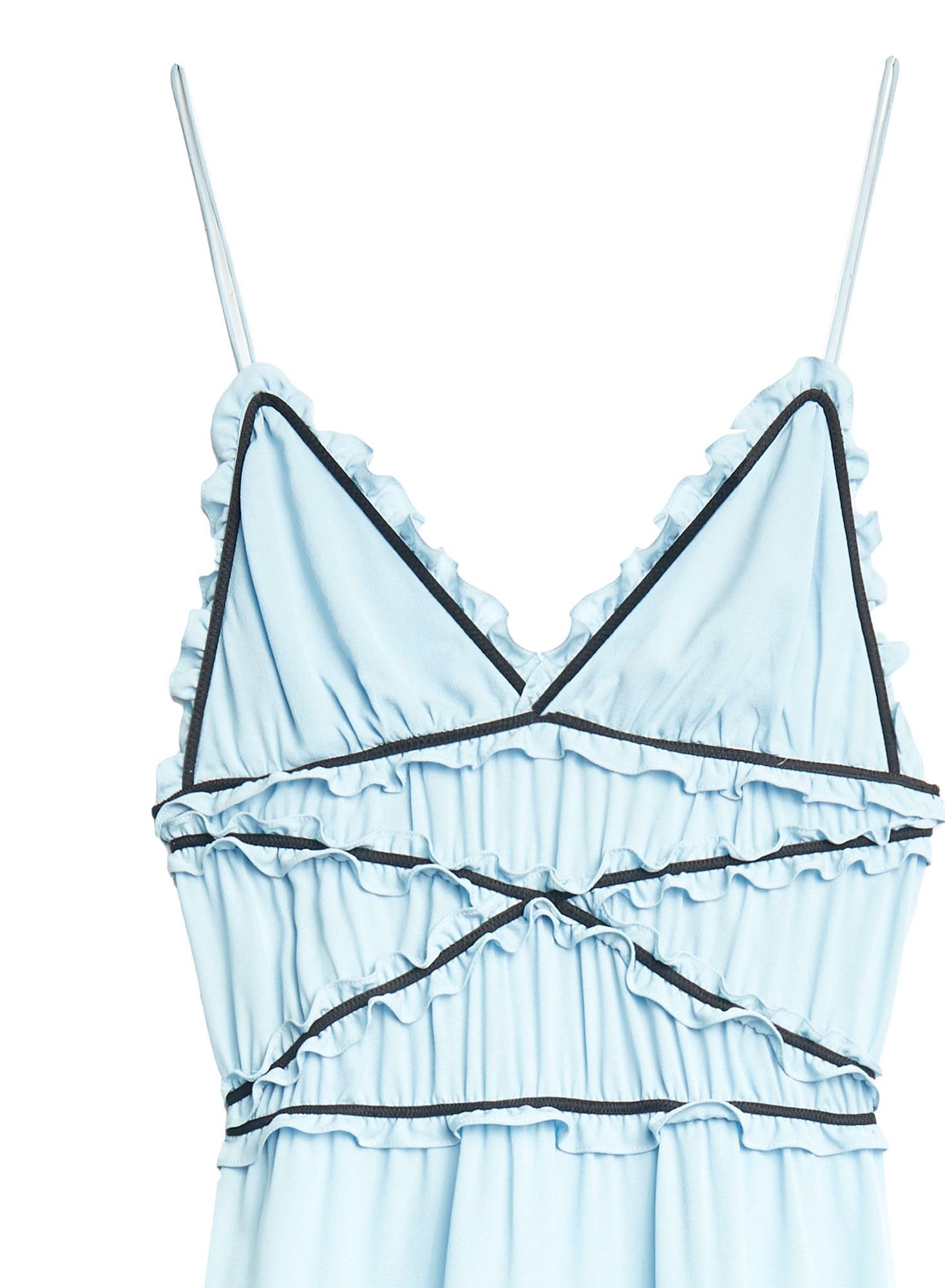 Let's heat things up. Our Love Bound Maxi dress features rouched bodice and cups with contrasting elasticized seam detailing. Ultra figure flattering shape with adjustable straps. Hits at ankle. Works perfectly from the beach, to the bar, and all the way to the bedroom.