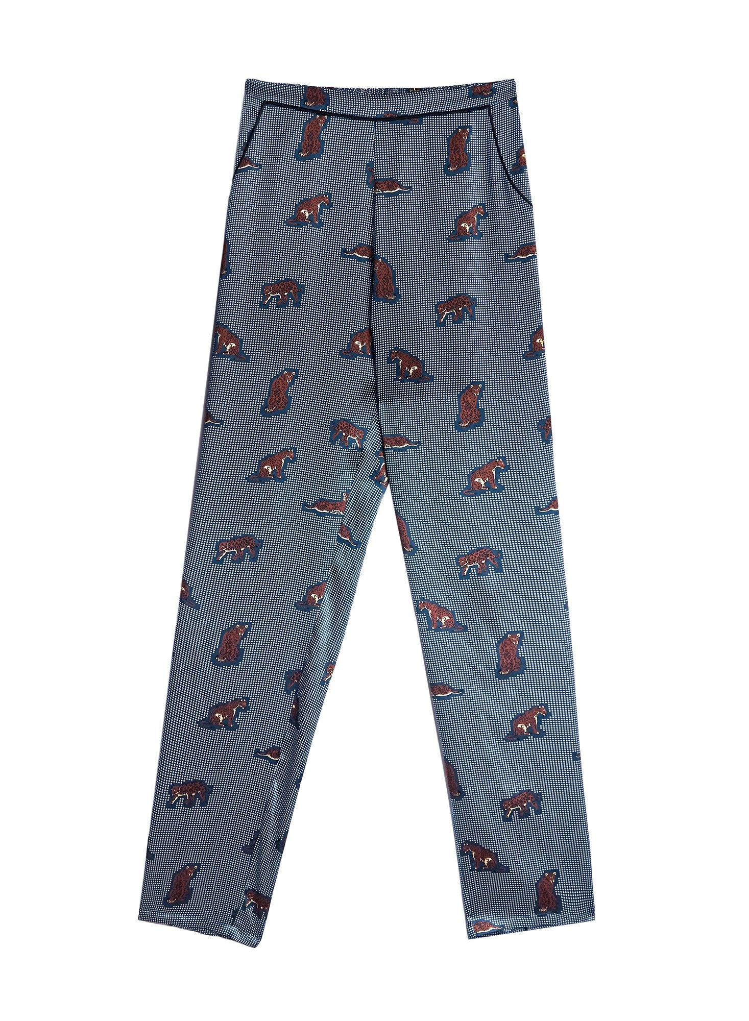 Smooth AF. Jaguar patterned silk pajama pant with contrasting black back seam piping. Pair with the matching Fleur PJ Top for a chic set that works perfectly on the streets or in the sheets.Â