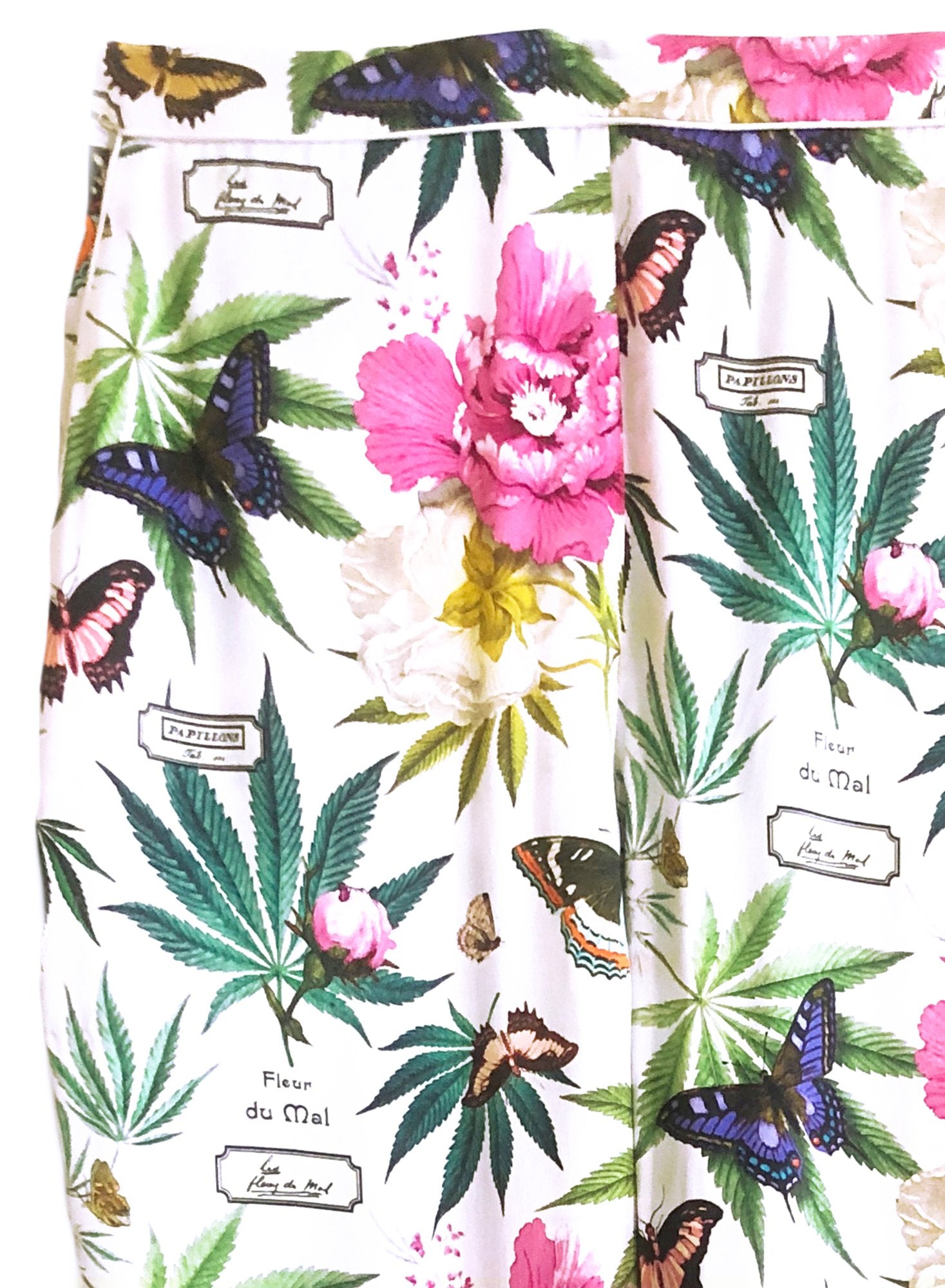 Smooth AF. Our white botanical patterned silk pajama pant with back seam piping. Pair with the matching Fleur PJ Top for a chic set that works perfectly on the streets or in the sheets.Â