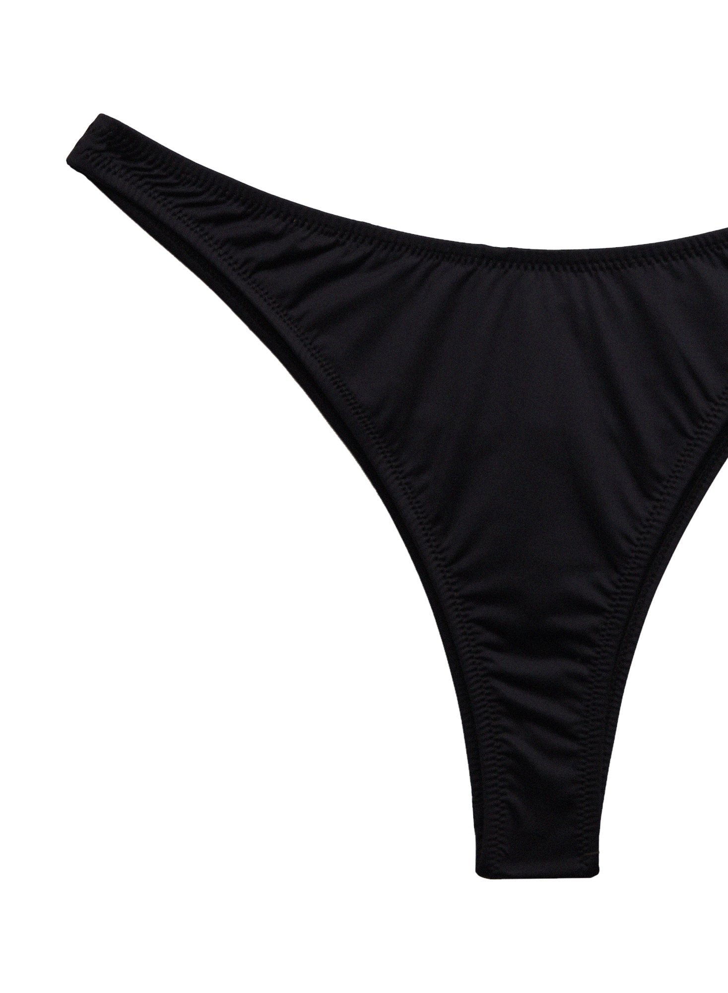 Our smokin' hot High Leg Bikini Bottom in black. Stretch fabric hugs and shapes. A less is more silhouette with an ultra-cheeky cut. High leg with back keyhole which features Fleur logo engraved hardware detailing. Fully lined. Complete this set with the black Balconette Bikini Top.