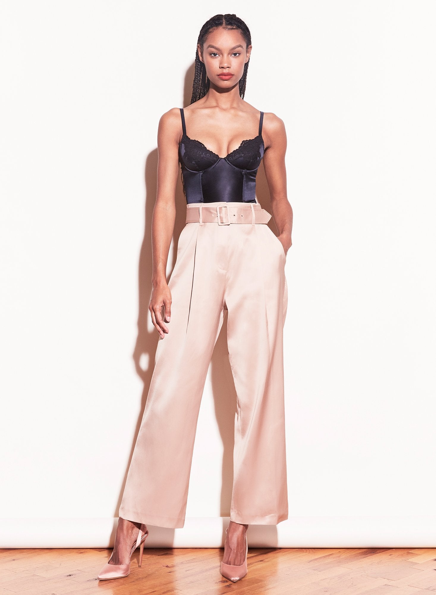 Our James Lace Cupped Bodysuit features lightly padded underwire cups for a supportive fit and our favorite James lace appliqué along the neckline. Stretch mesh panel at back for added sex appeal. Boning through the torso creates the perfect shape. Adjustable straps, center back zipper. We love it paired with the Embroidered Silk Mini Skirt or Twill Belted Trouser.
