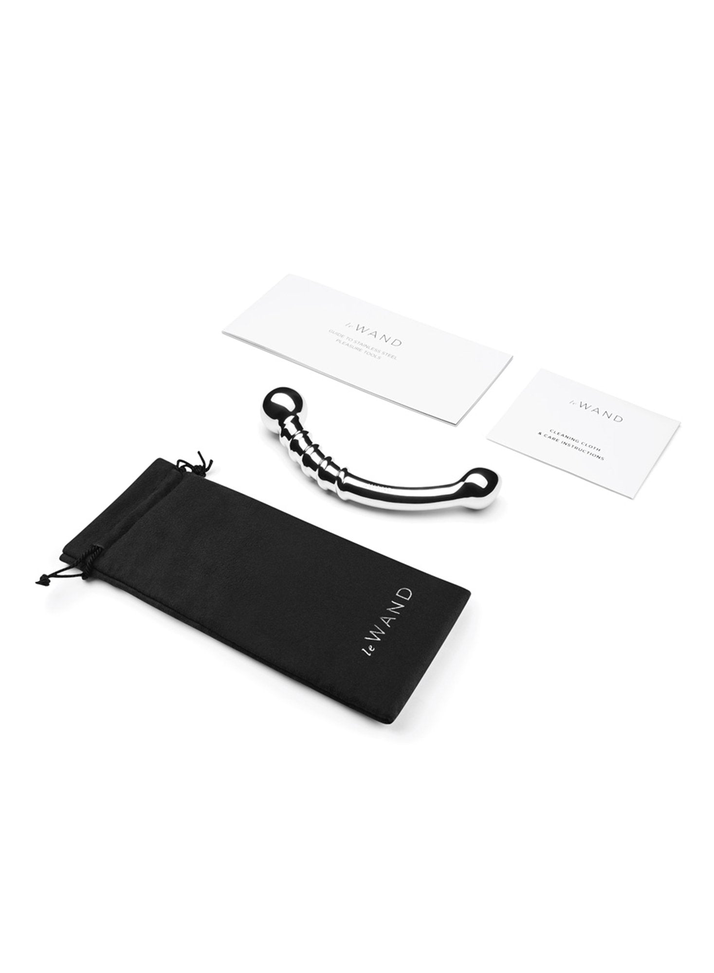 Make your toes curl. The Le Wand Bow is a solid stainless steel wand that is perfectly curved for a deep, effortless reach. Features a bulbous end that can be used as a both toy and an exerciser. Swirl ridges provide additional internal stimulation, while the smaller tear drop end is perfect for a satisfying, targeted massage. Perfect for solo sessions or partnered playtime, the Le Wand Bow is sleek, chic, and always gets you there.