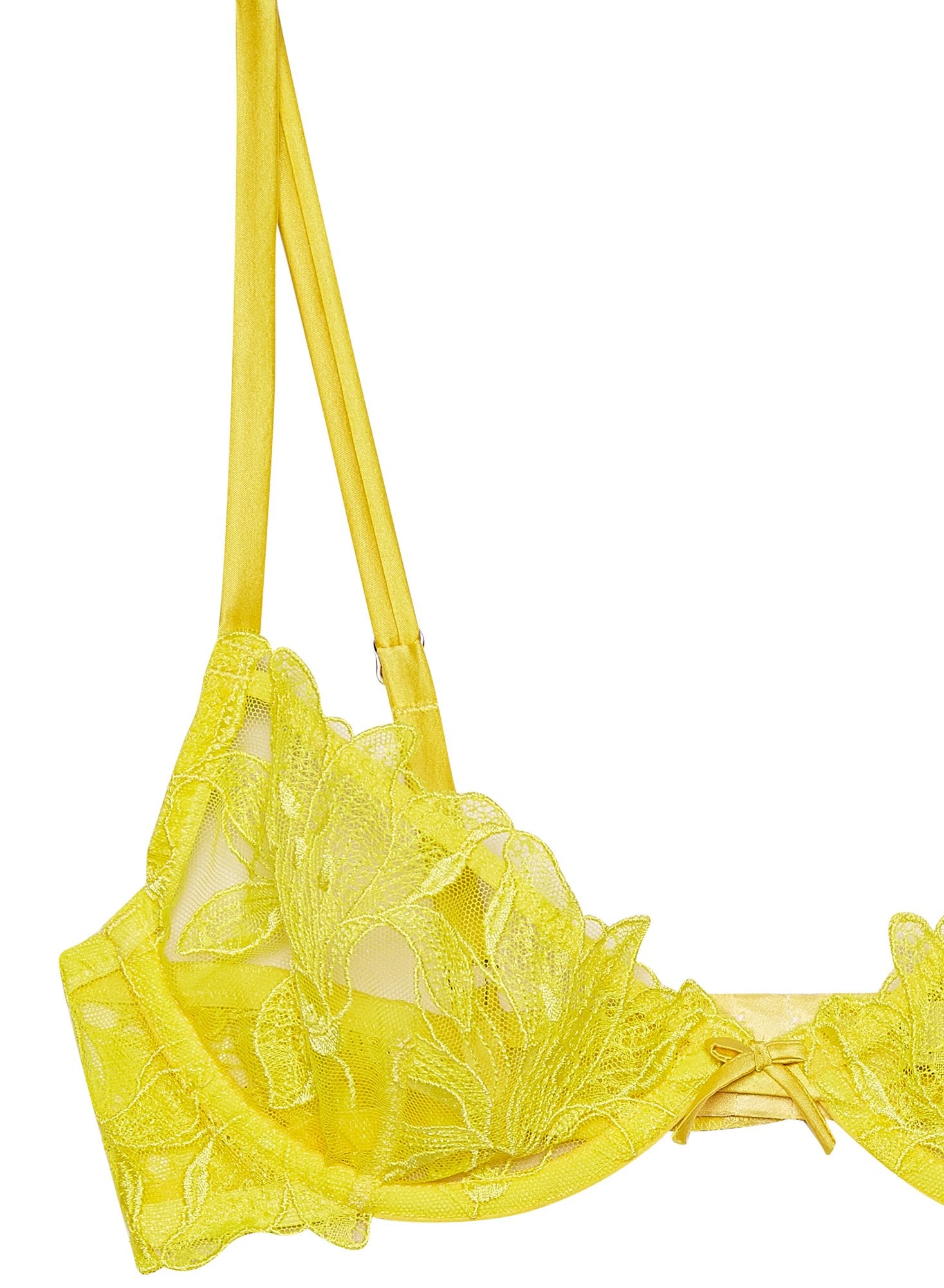 Très Chic. Our favorite bra has large embroidered Lilies that perfectly drape across the body. Underwire with adjustable straps provides subtle shaping and lift. We love to show it peeping through a semi-sheer white tee. Complete the look with the matching Lily Hipster Thong.