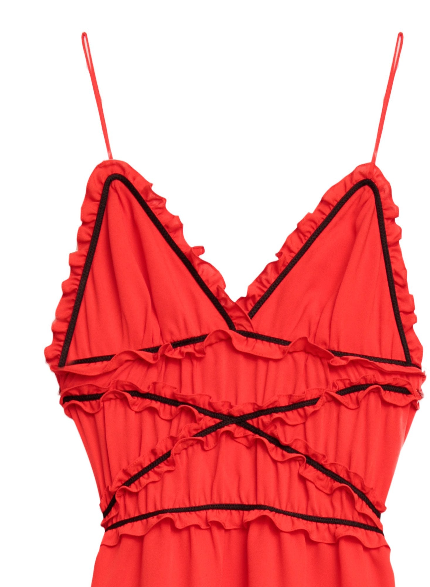 Let's heat things up. Our Love Bound Maxi dress features rouched bodice and cups with contrasting elasticized seam detailing. Ultra figure flattering shape with adjustable straps. Hits at ankle. Works perfectly from the beach, to the bar, and all the way to the bedroom.Â