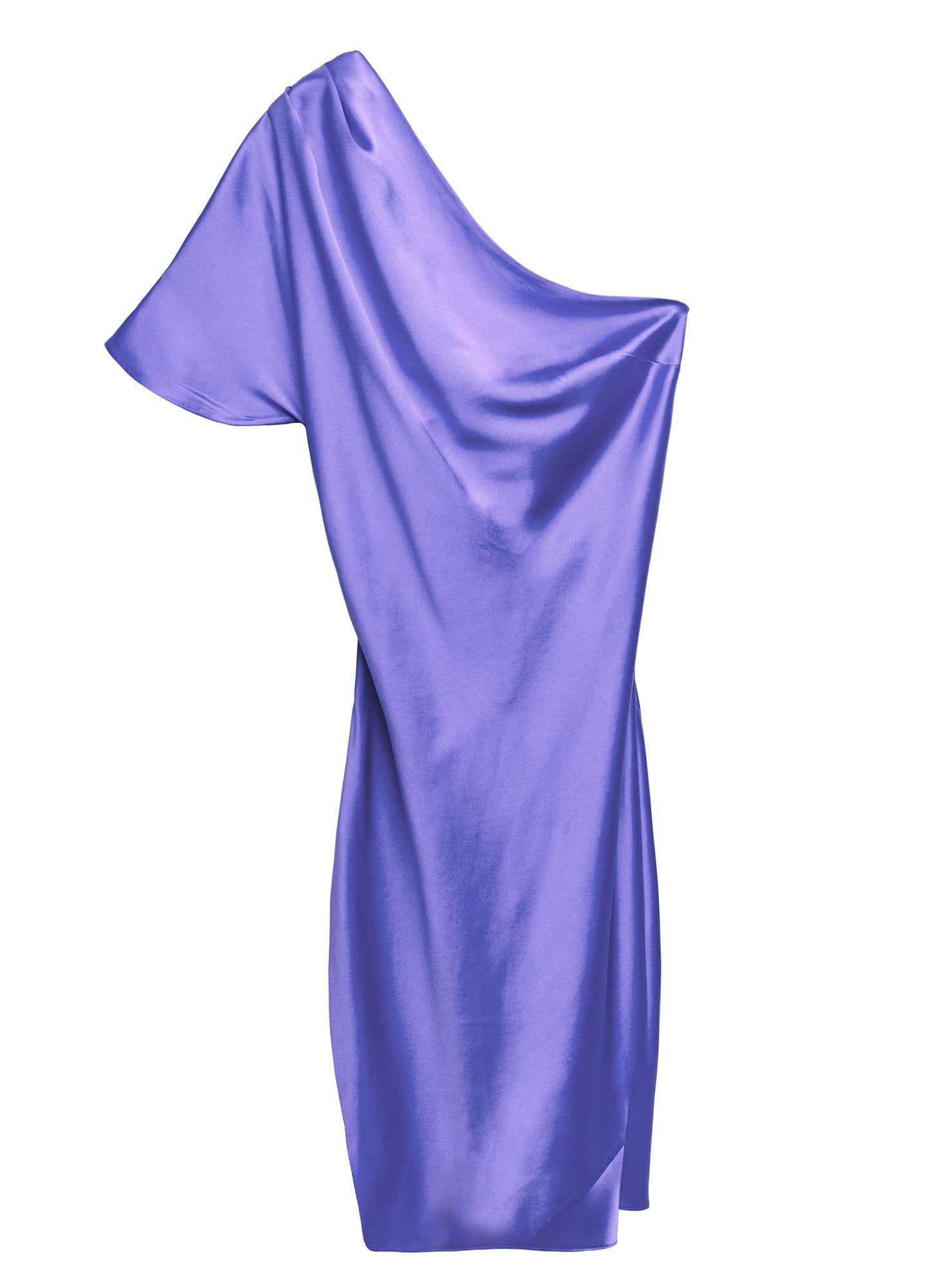Cold shoulder, hot nights. Our classic one shoulder slip now in a sexy mini length. Features a flattering bias cut and heavy Silk charmeuse to hug every curve. Asymmetrical matte silk finished hem. Complete this gem of a look with the matching amethyst James Lace Cheeky.