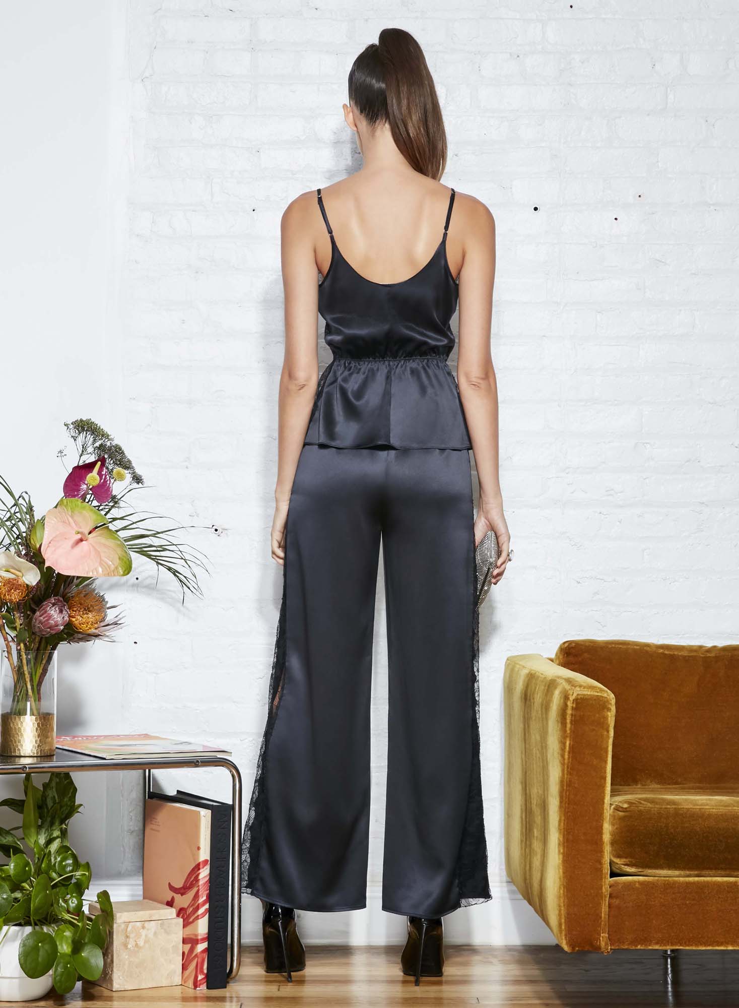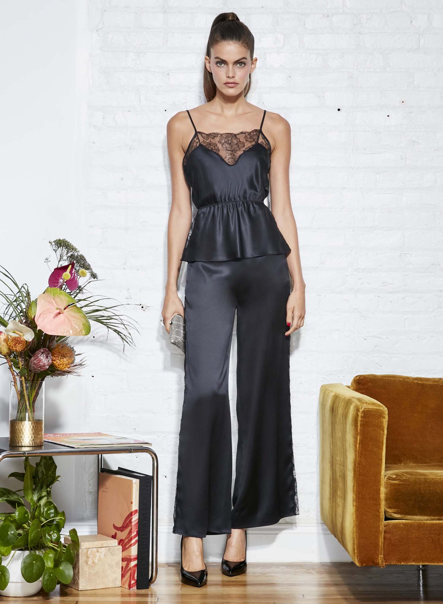 Silk charmeuse meets luxe French Leavers Lace for this chic camisole. Adjustable straps and flattering back scoop. Delicate rose lace at sides and yoke give a peek of what's beneath. Wear yours with the matching Rose Lace Wide Leg Pant.Â