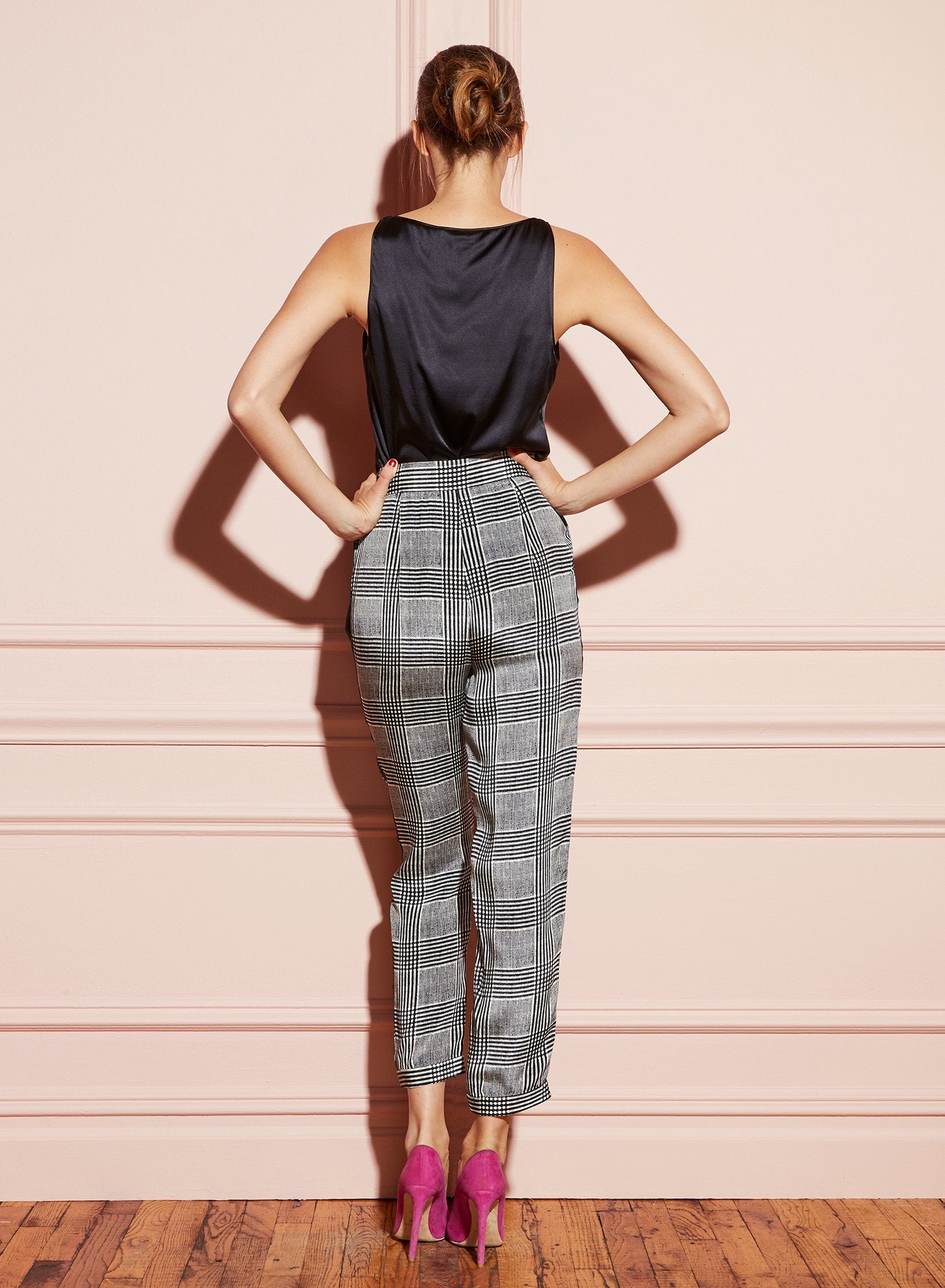 The Scoop Neck Cami is a sophisticated upgrade to any outfit. Sleeveless with a scoop neckline is chic and flattering. The perfect layering piece under a jacket, or suited up with the Tuxedo Pants.