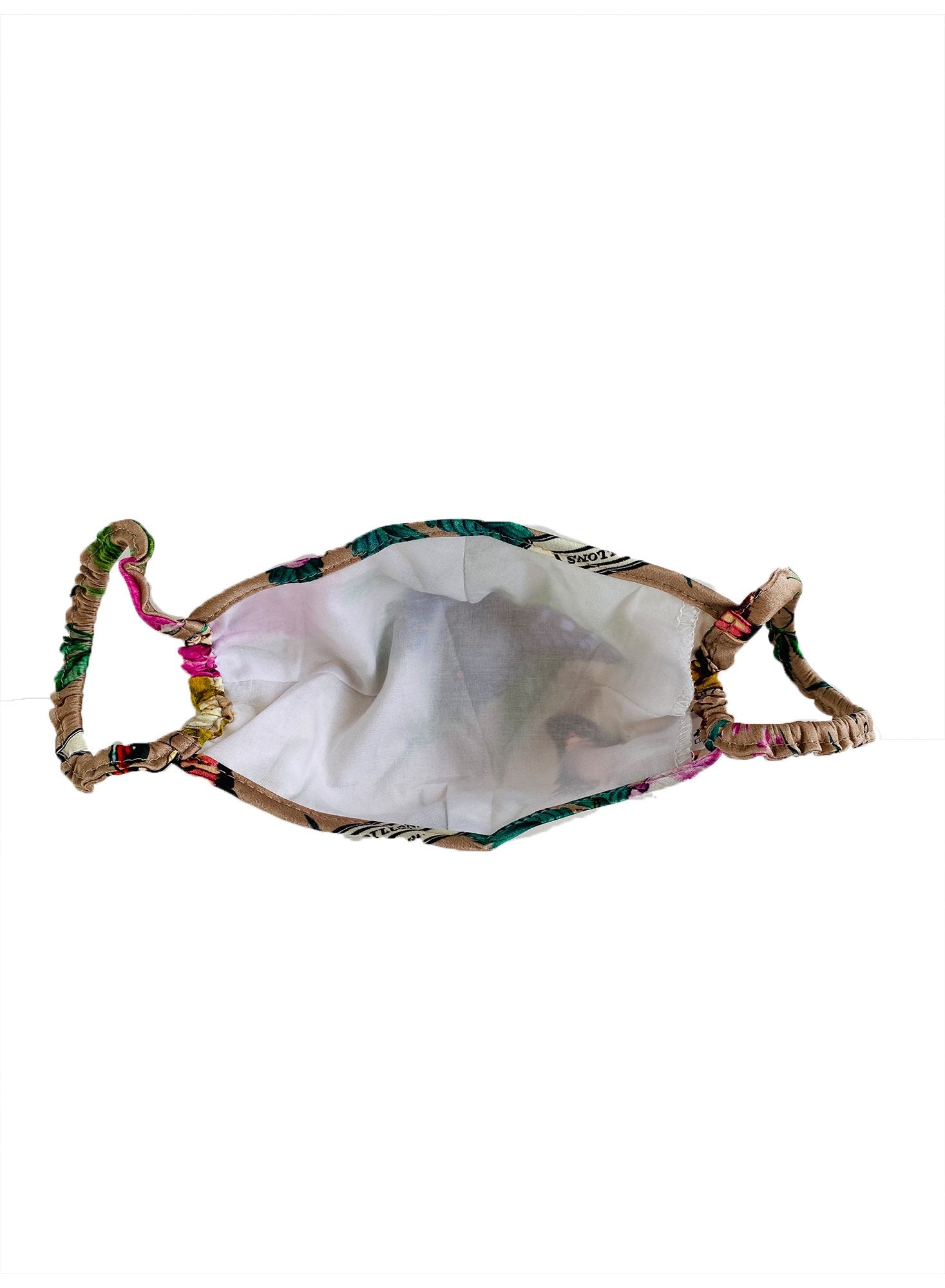 Our Silk Face Mask in our signature Papillon print, featuring butterflies, cannabis leaves and flower blossoms is light, breathable, and chic. 100% Silk and lined with cotton. Features a side opening for disposable filter. Silk covered elastic bands for extra comfort.