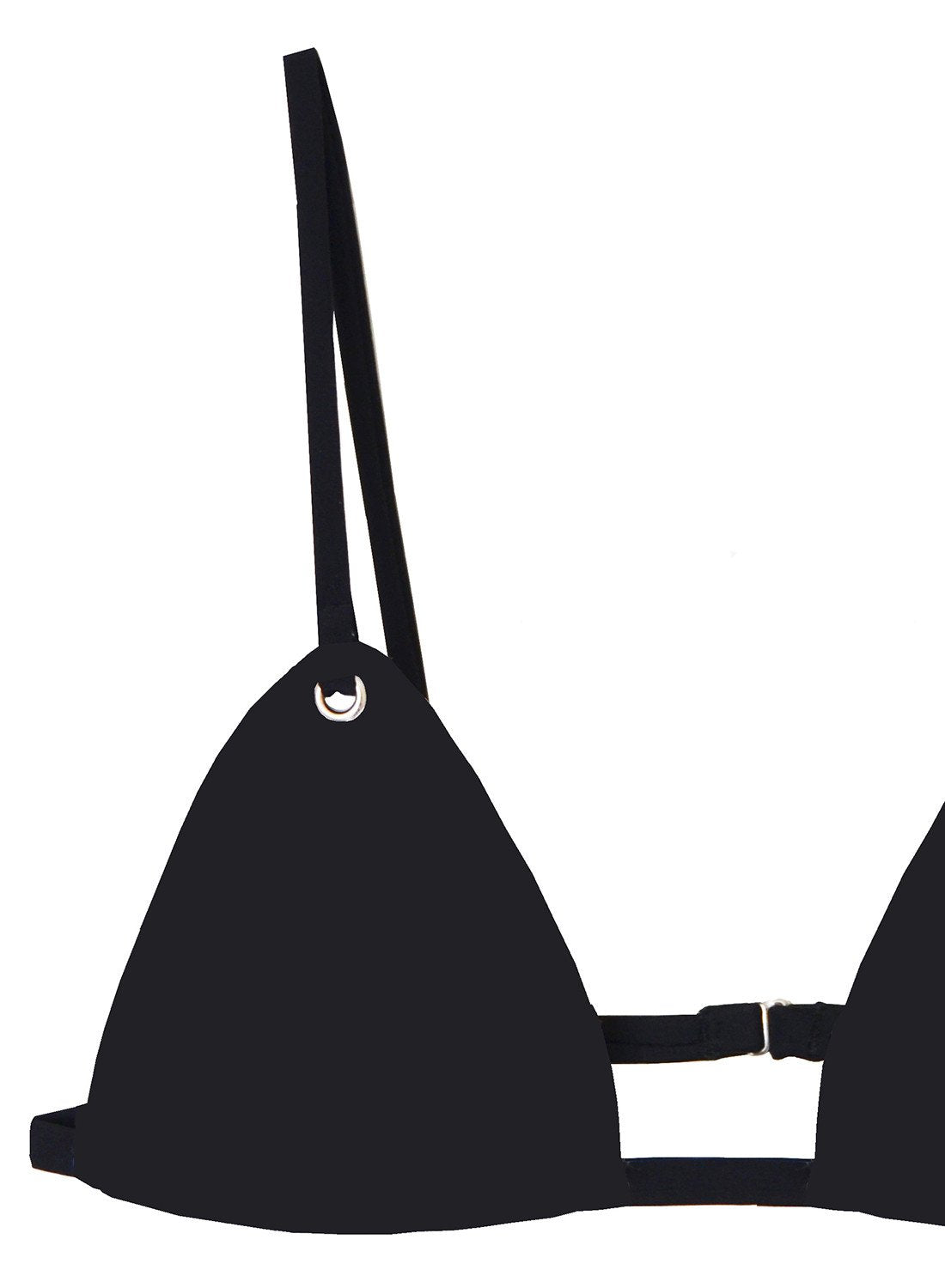 The essential triangle bikini top with grommet detail and adjustable straps. Made from an Italian stretch fabric that retains shape. Fits small to size around band. Cups are fully lined. Pair with the Lace Back Bikini for a chic and sexy set.