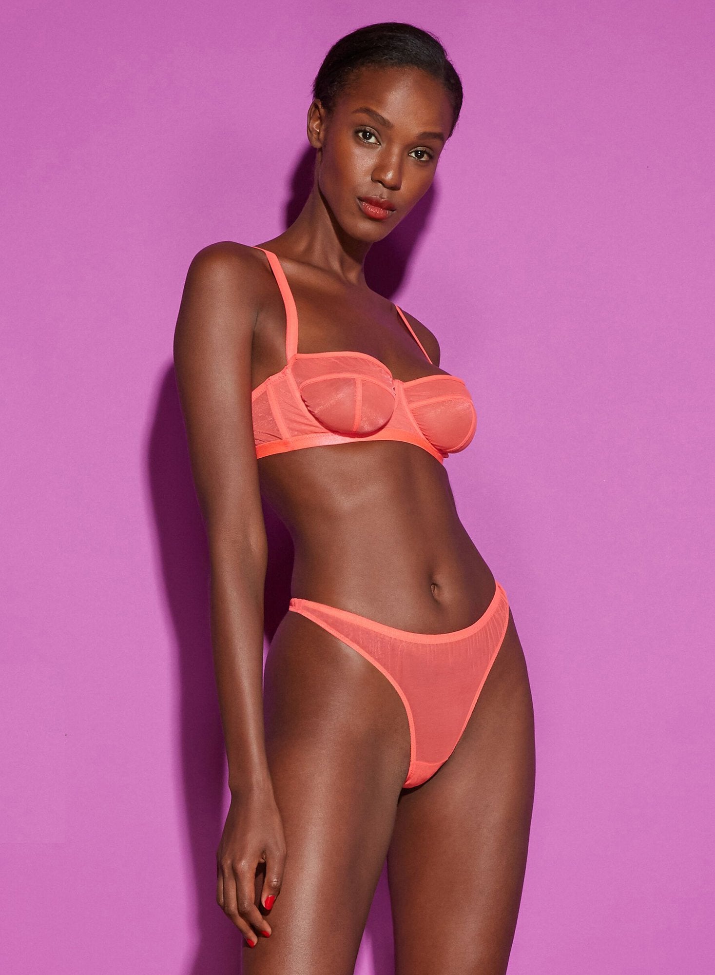 Sexy little thing. Our Tricot Thong cut from ultra comfortable sheer stretch tricot. Pair with the matching Tricot Balconette Bra for the perfect everyday set, in or out of the bedroom.Â